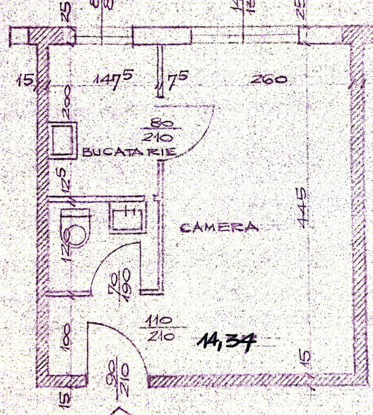 Garsoniera este semidecomandata, situata la etajul 6 cu suprafata totala de 18 mp (conform schitei atasate).