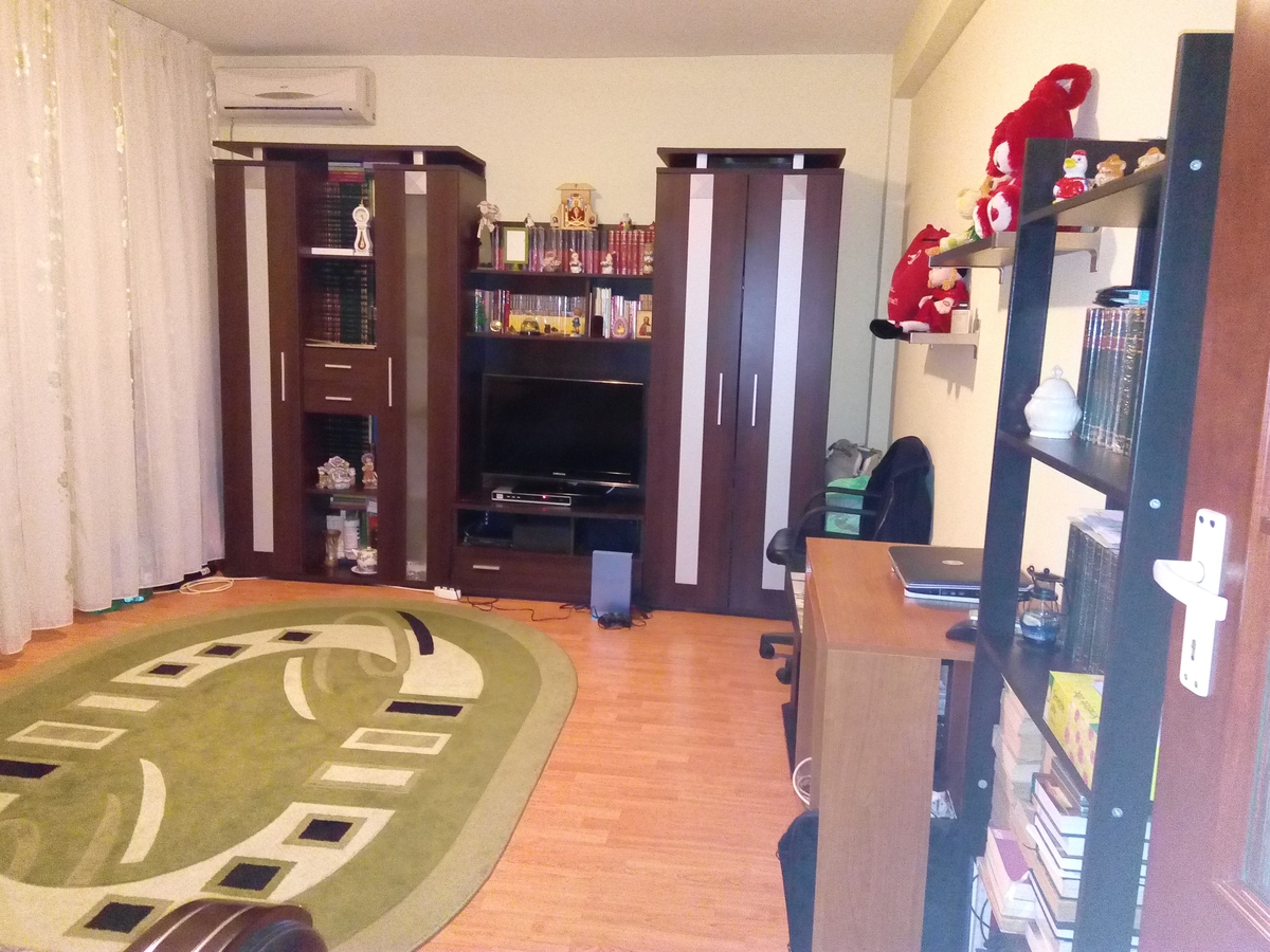 Garsoniera se vinde partial mobilata si utilata, fiind dotata cu: centrala termica, TV, aer conditionat, frigider, aragaz, hota si masina de spalat rufe.