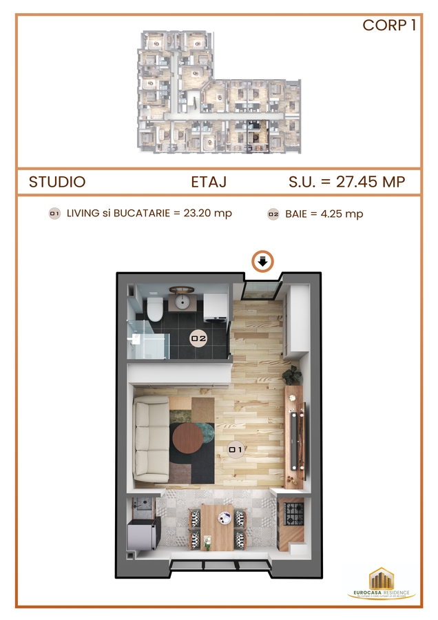 Eurocasa Residence iti prezinta spre vanzare o garsoniera semidecomandata, in cartierul Militari Residence.