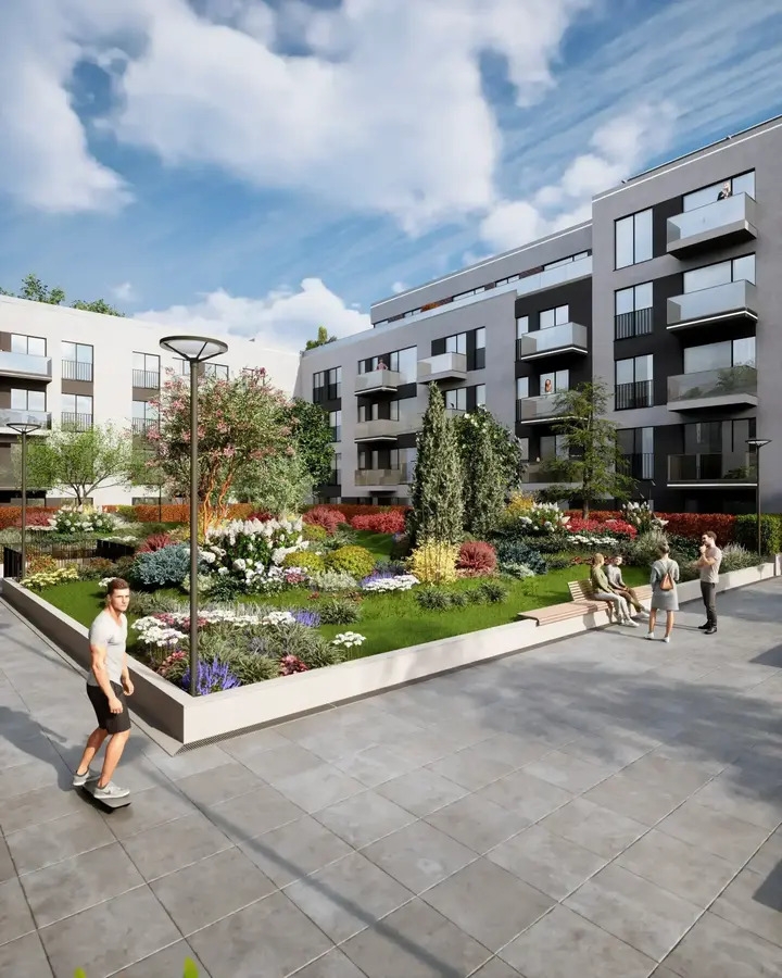 • Gradina interioara de 1590 mp, amenajata cu alei si spatii verzi generoase - un adevarat spatiu de relaxare in mijlocul orasului