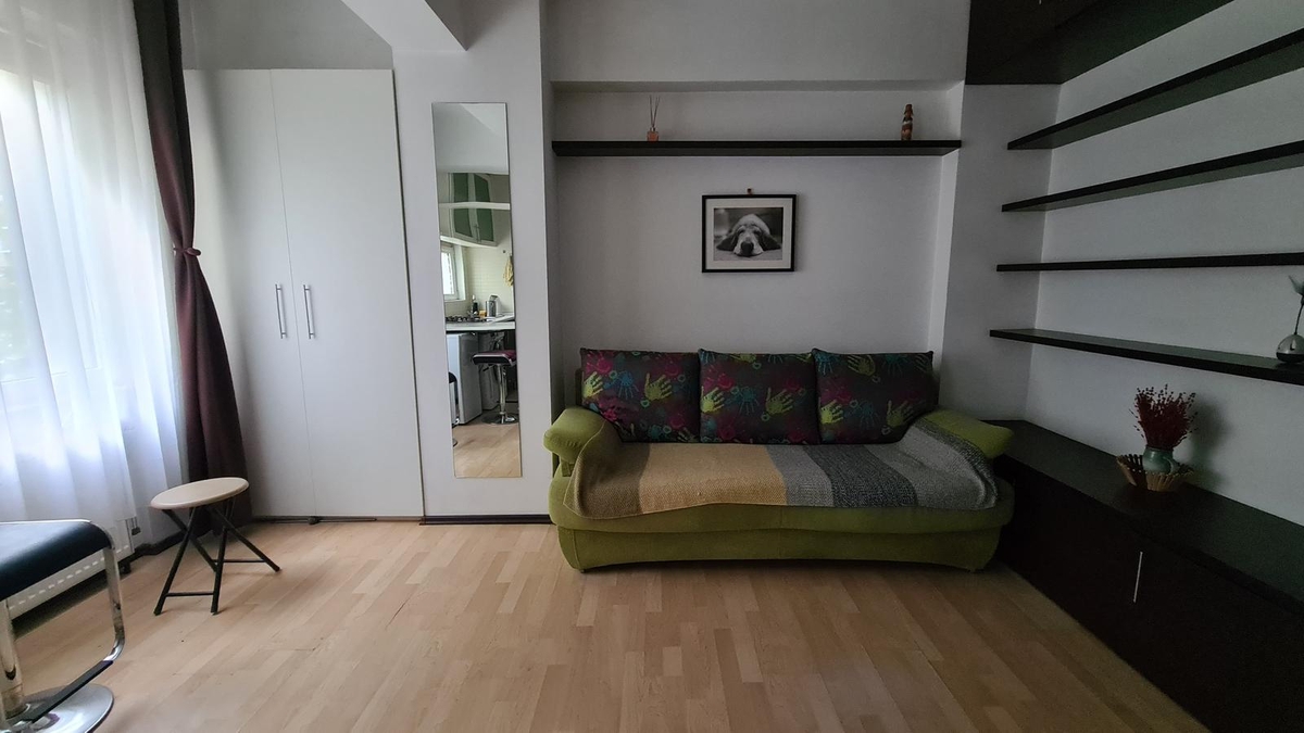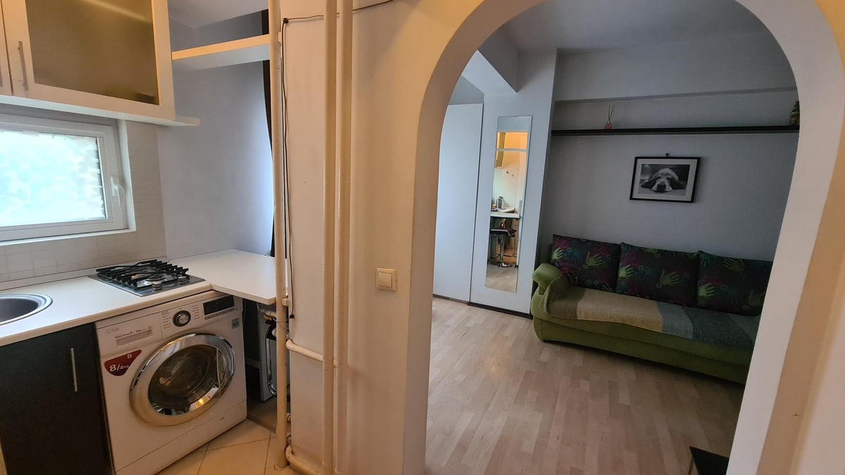 Vanzare garsoniera decomandata, camera, bucatarie, baie, etaj 1 din 4, bloc caramida, fara risc seismic, un minut Splaiul Independentei, acces rapid metrou Unirii sau Izvor, ferita de zgomotul strazii, merita vazuta,