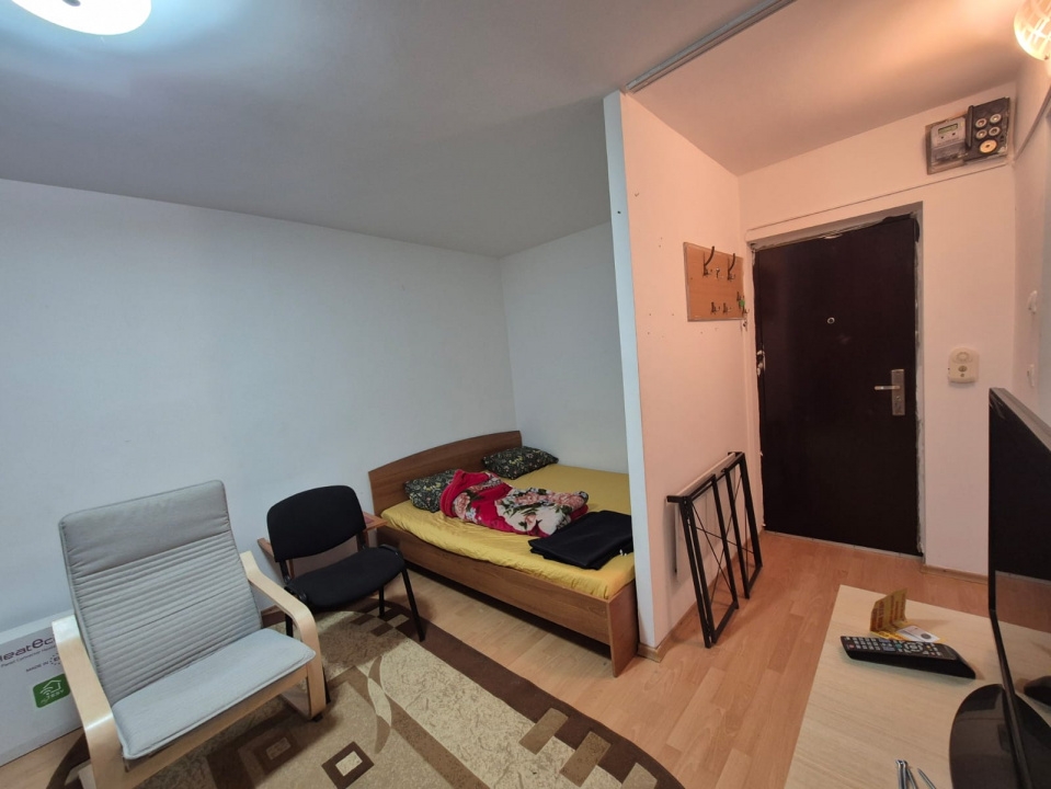 Garsoniera de 27 mp, situata la etajul 5 din 10, intr-un bloc cu doua lifturi. Imobilul este in curs de reabilitare termica, iar gazul este la usa.