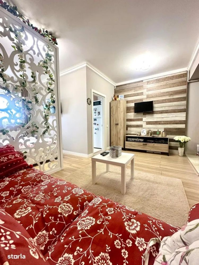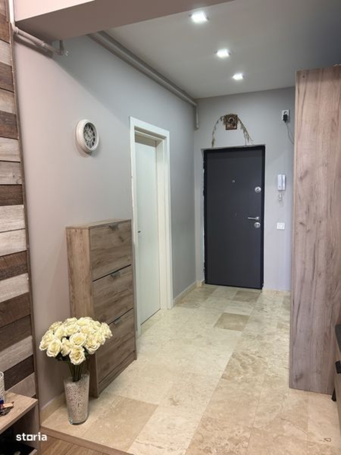 Garsoniera se vinde complet mobilata si utilata, cu toate electrocasnicele si mobilierul noi, nefiind niciodata inchiriata. Locuinta se remarca prin finisaje de lux si detalii atent alese:
