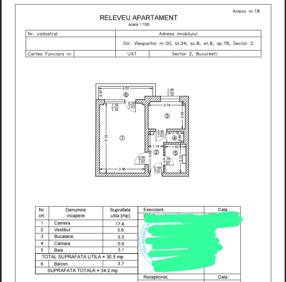 In sectorul 2, pe strada Viesparilor, nr. 50, bloc 34, scara 2, se afla garsoniera. Are 34,2mp, compusi din 30,5mp SU+3,7mp balcon. An constructie 1979. Blocul este anvelopat-2019. Detalii, in privat.