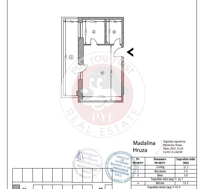 Suprafata totala: 42 mp