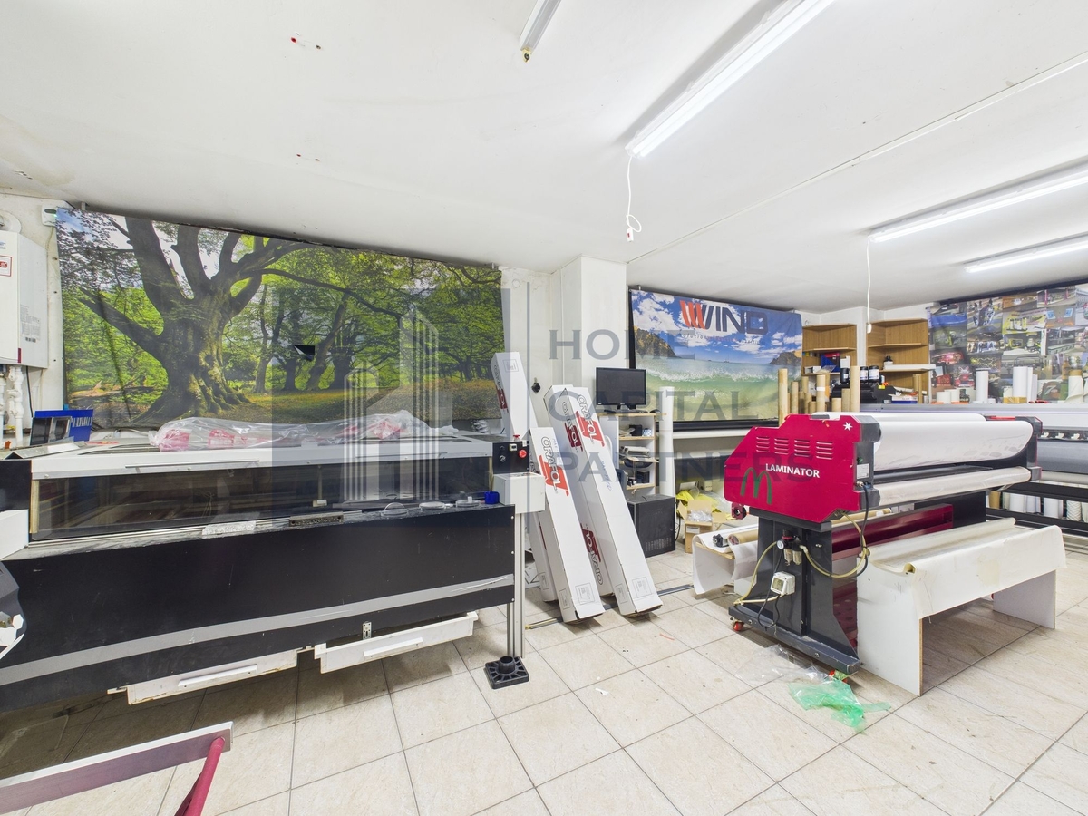 Iti prezentam un spatiu comercial generos, perfect pentru companii care au nevoie de suprafete mari, zone de productie, depozitare, birouri sau showroom. In prezent aici isi desfasoara activitatea o firma de materiale publicitare, ceea ce confirma versatilitatea si functionalitatea imobilului.