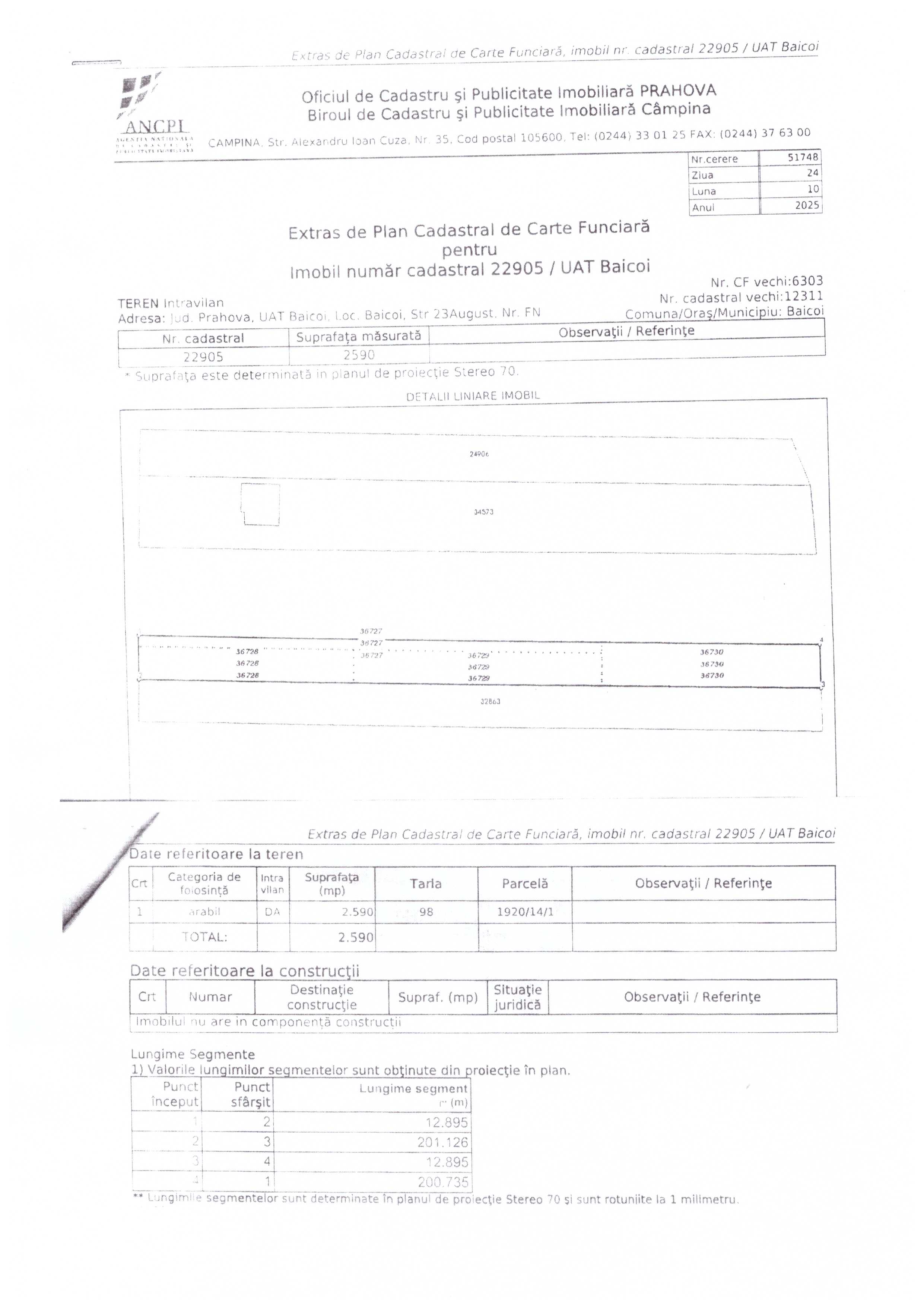 Proprietari vand in Baicoi -PH teren stradal lotizat (3 loturi+ drum servitute), situat pe str. 23 August in intravilanul orasului.