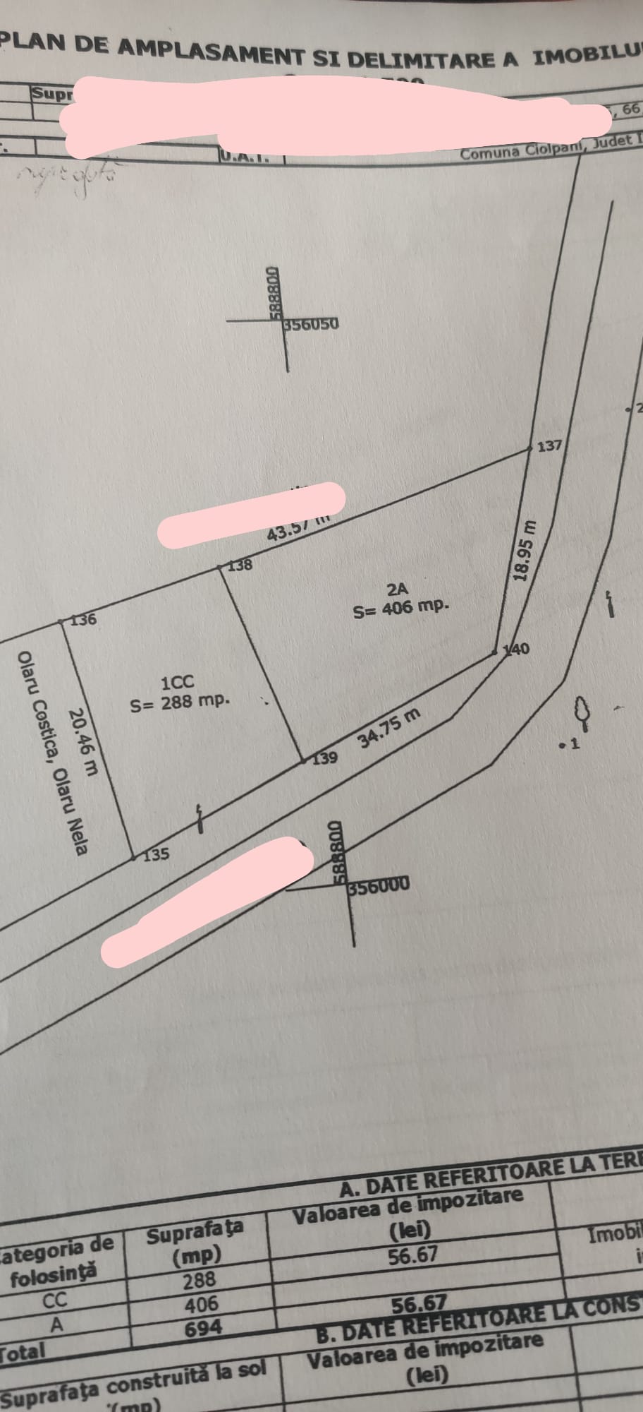 Izvorani, va prezentam spre vanzare un teren in Ciolpani sat Izvorani in suprafata de 700 metri pe strada Vintila Bratianu, are forma de trapez, deschidere stradala peste 50 metri, utilitatile sunt in fata portii ( canalizare, gaz, curent ), curtea are doua porti mari ( poate intra camionul ), gardul este pe fundatie din beton pe spalieri metalici, curtea este curata cu un singur nuc mare !! Este la 2 km din DN1 si la aprox 500 m de Castel Film si-sau de COR.