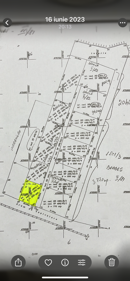 Proprietar, parcela teren agricol extravilan 502mp dintr-un lot de 15 parcele cu drum de acces intre ele asa cum apare in plan.Apa si canalul sunt in fata parcelei iar curentul la limita intravilanului la aproximativ 100m. Este pe drumul care duce la statia de epurare a apei,in stanga de calea ferata.