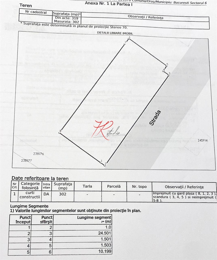 7R-3491 Teren Intravilan de vanzare in Bucuresti - Apusului, reper Str. Piscul Crasani, avand o suprafata de 302 mp si deschiderea de 25 ml la 1 strada.