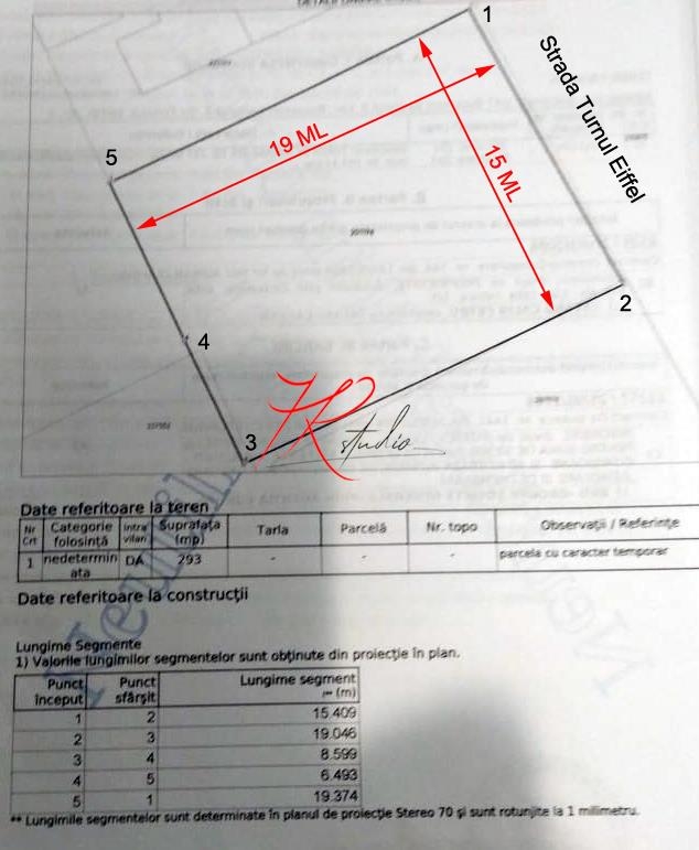 7R-3386 Teren Intravilan Construibil de vanzare in Bucuresti - langa Parcul Circului, pe strada Turnul Eiffel, avand o suprafata de 293 mp si deschiderea de 15 ml. Caracteristici teren POT 45% % , CUT 1,3 60% Er/M , Regim de inaltime P 2 3Er/M