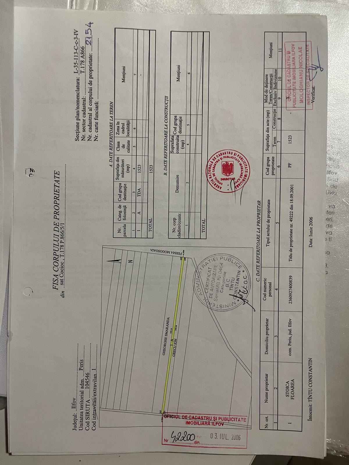 Vand teren intravilan arabil, case construite in vecinatate, in Peris, intrare din strada Stefan cel Mare pe strada Piersicariei. Terenul are 1500 mp total cu deschidere de 4,13 m.