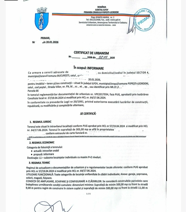 Detalii suplimentare: Cadastru Certificat urbanism constructie teren Intabulare Liber Parcelabil