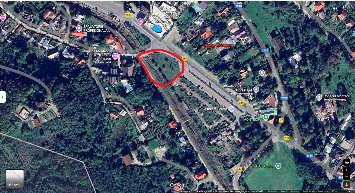 Km 0, super central, 3 parcele de 542 mp cu toate utilitatile. Pretabil pentru casa de vacanta sau pensiune