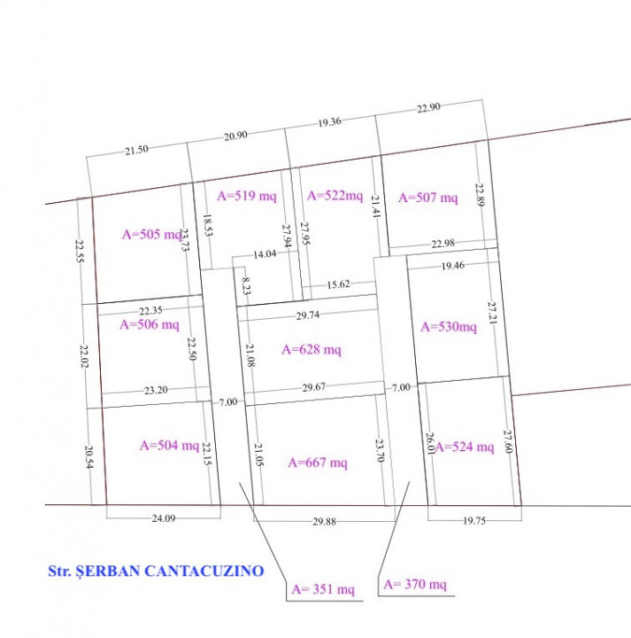 Cateva loturi au deschidere la str. Serban Cantacuzino, iar celelalte sunt in interior si vor avea deschidere la drumul de acces cu o latime de 7m. Distanta de la strada la loturile de interior variaza intre 22m si maxim 50m.