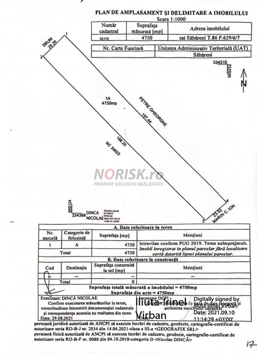 Teren Constructii Intravilan 4750mp SABARENI - 0% COMISION