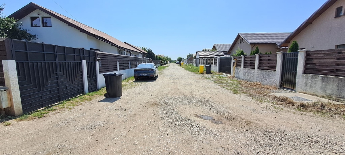 Terenul dispune de 590 mp (551 mp + servitute), cu o deschidere de 16 m, forma dreptunghiulara, iar utilitatile sunt la teren.