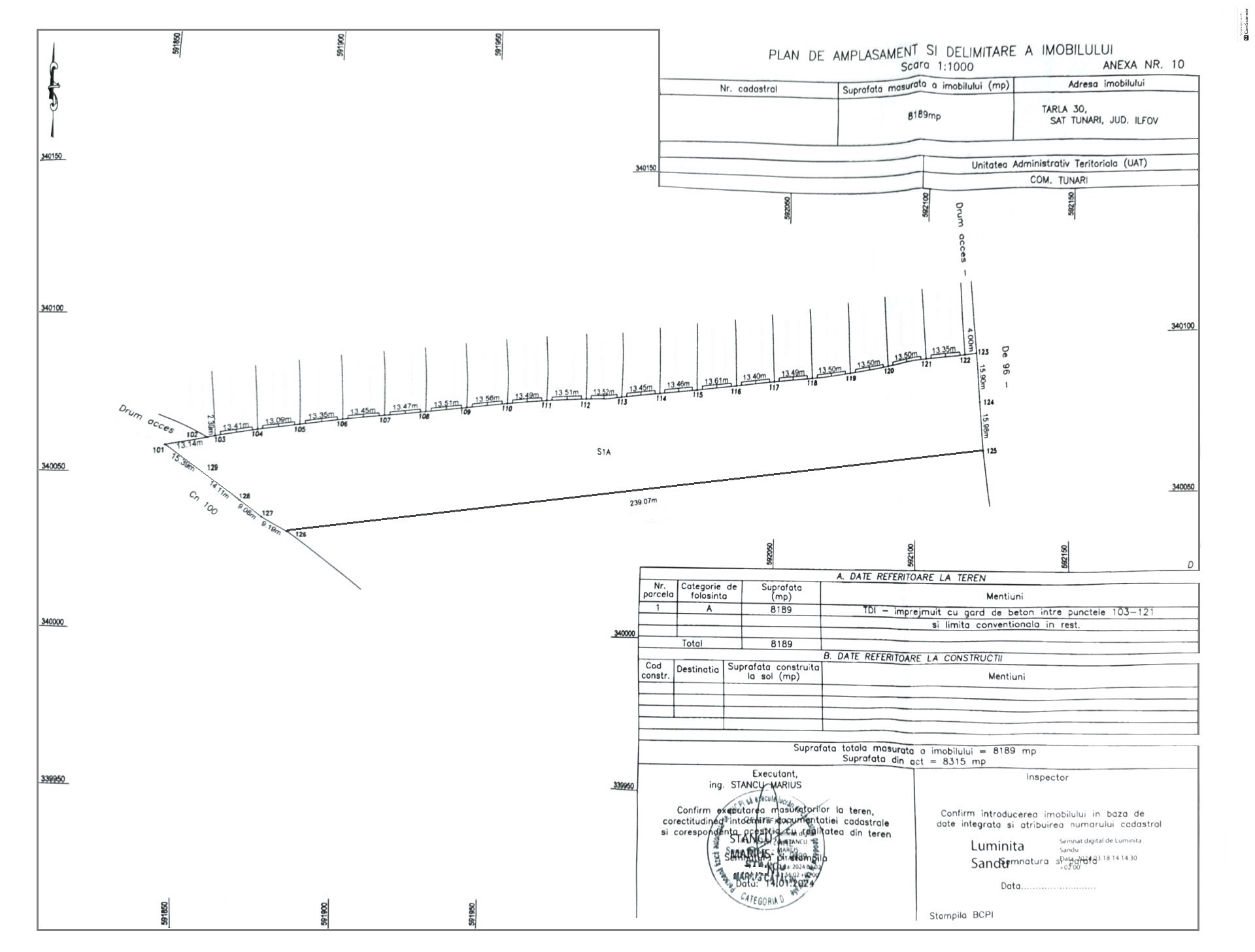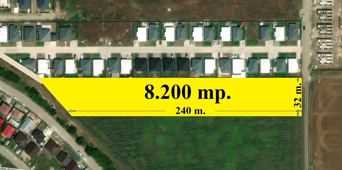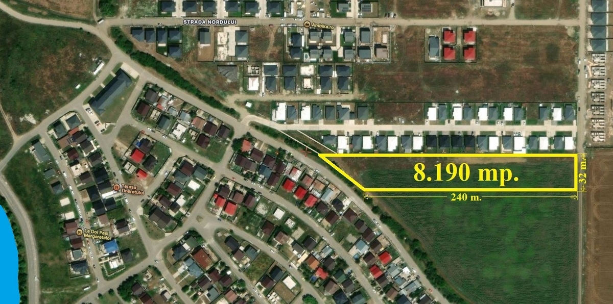 Cartierul Tineretului, Str. Vulturilor, Tarla 30, lipit de gardul Ansamblului Rezidential Lake Village Tunari, zona cea mai cautata din Com. Tunari in plina expansiune imobiliara vanzare teren in suprafata de 8.189 mp. cu deschidere stradala de 32 ml. si acces facil catre Centrul Comunei prin Str. Nordului .