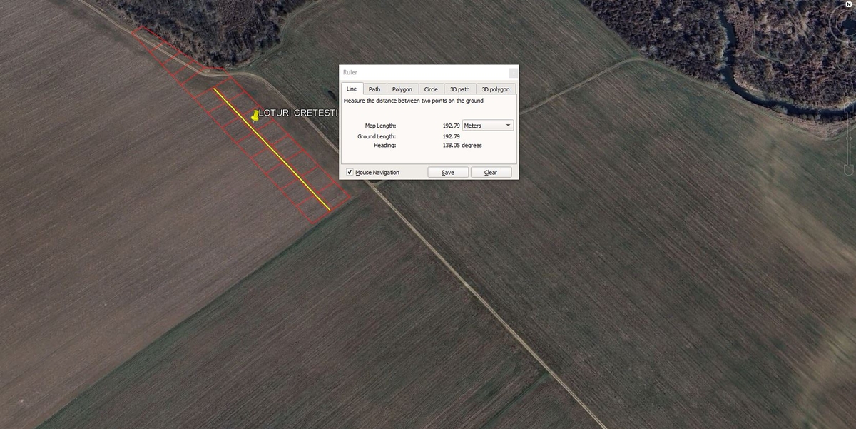 Deschidere: 25 m/lot la drum privat de 5 m latime (192 m lungime).