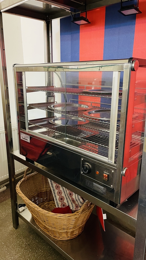 Vand vitrina calda Hendi 160 l cu 3 nivele ca cea din prima imagine de catalog temp. max. 90 grade utilizata 3 saptamani si asta se vede ca e ca si nou nouta interior-exterior,